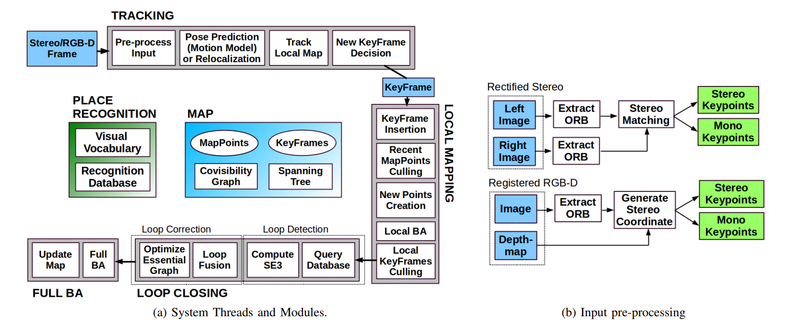 It consists of three main modules: Tracking, Local Mapping, and Loop Closing.
